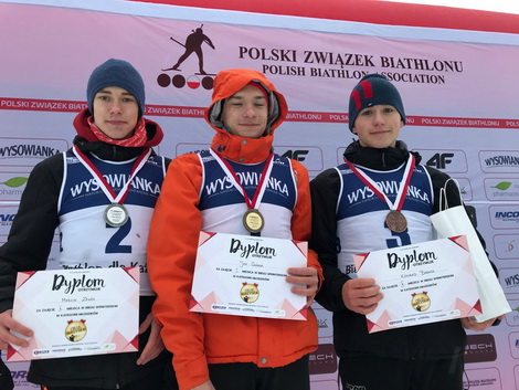 Z podobną przewagą nad rywalami w kategorii junior młodszy wygrywał Wojciech Janik. Młodszy brat Mateusza jest obecnie zdecydowanie najszybszym biathlonistą w swoim roczniku. W odniesieniu pewnego zwycięstwa nie przeszkodziły mu nawet trzy karne rundy. Obok niego na podium stanęli Marcin Kaczanowski z Melafiru Czarny Bór oraz Bartłomiej Puto z BKS WP Kościelisko.