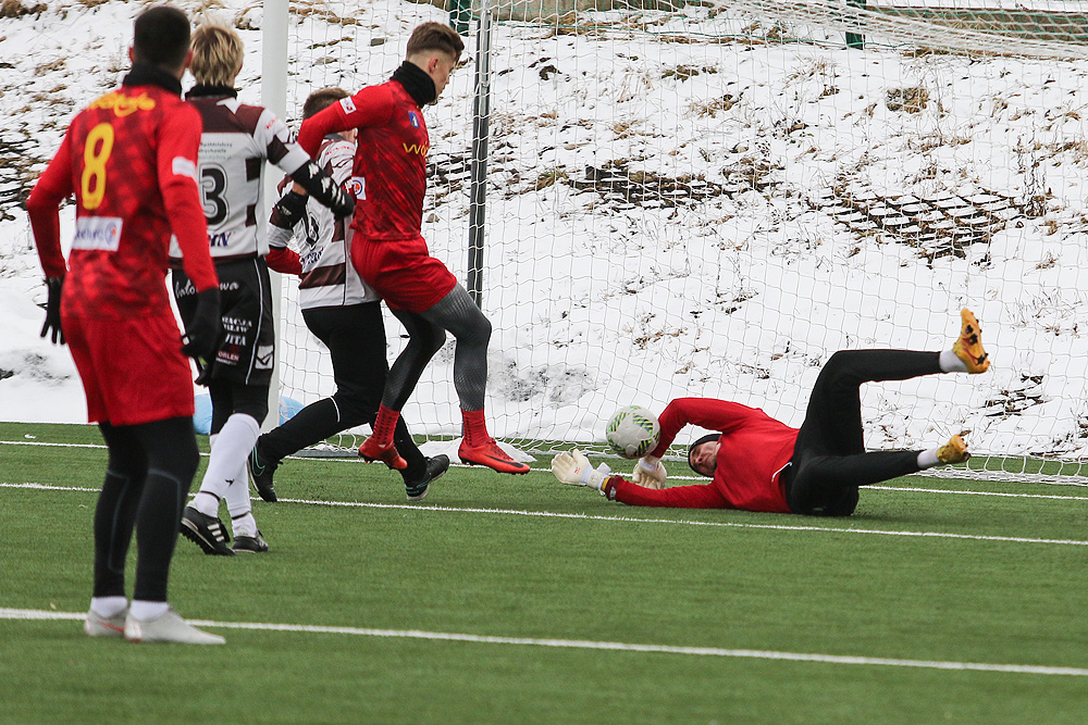 Nowotarżanie zaczęli potyczkę z Beskidem od mocnego uderzenia. Już w pierwszej minucie objęli prowadzenie, a w kolejnych wyłącznie potwierdzali swoją przewagę. Szybkie wymiany podań po obwodzie, pełna kontrola i dominacja w utrzymywaniu się przy piłce to skrót pierwszych 45 minut. Popis gry zespołowej Podhale zaprezentowało przy strzeleniu drugiego gola w tym meczu. Przechwyt na własnej połowie, rozegranie do lewego skrzydła, przeniesienie gry na drugą flankę i dokładne wyłożenie piłki na piąty metr zaowocowały podwyższeniem rezultatu. Przy takiej przewadze swojej drużyny, na wykazanie się szansy nie dostał Szukała, którego kontakt z futbolówką można by policzyć na palcach jednej ręki.