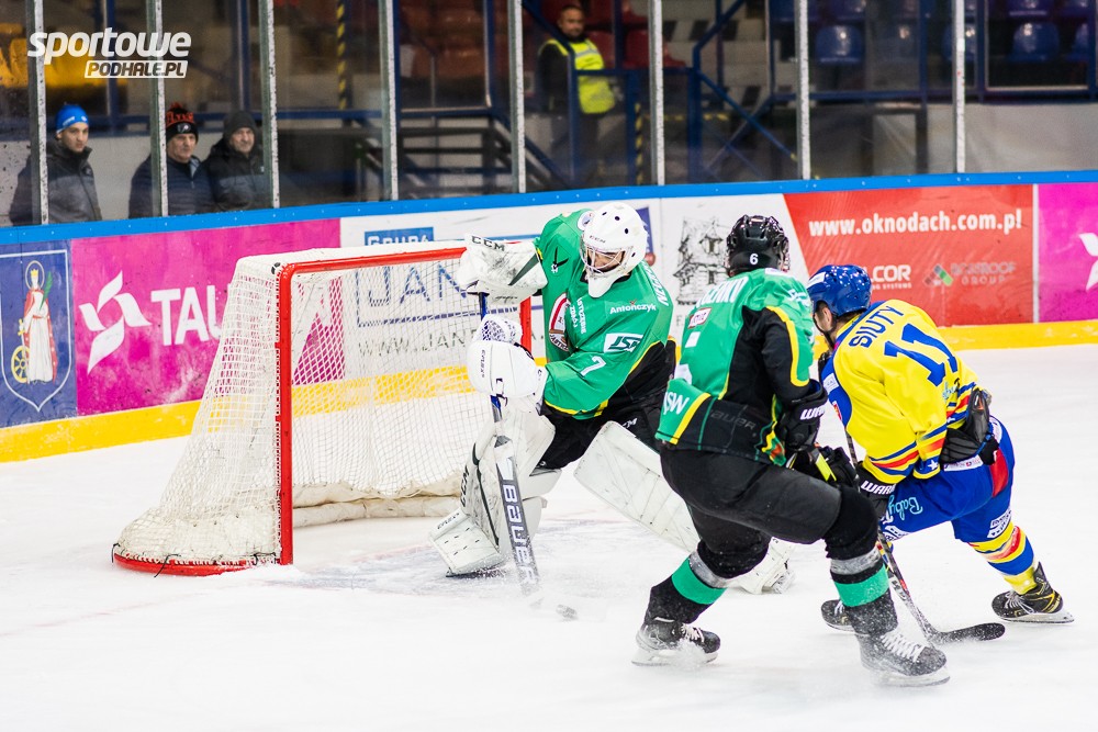Dla gospodarzy był to ważny mecz w perspektywie wywalczenia trzeciego miejsca przed play off. Nowotarżanie już tylko dogrywają sezon, ale to nie znaczy, że przeciwnikom się nie stawiają. W każdym meczu starają zaleźć im za skórę. Rywale nie mają łatwo choćby dlatego, że górale grają defensywny, destrukcyjny hokej. Gra głównie toczy się w tercji Podhalan, a tam jest gęsto od nóg i kijów. Trudno więc o fajerwerki w wykonaniu faworyta, o akcje, po których można byłoby wykrzyczeć „wow”.. Do tego rewelacyjnie strzeże bramki Bizub. Ambicja i ogromna ofiarność młodego zespołu z Nowego Targu nie wystarcza do wygrana. Dlatego koszmarna trwa seria porażek „Szarotek”. Licznik nabił dzisiaj osiemnastą z rzędu, co jest nowym klubowym niechlubnym rekordem.
