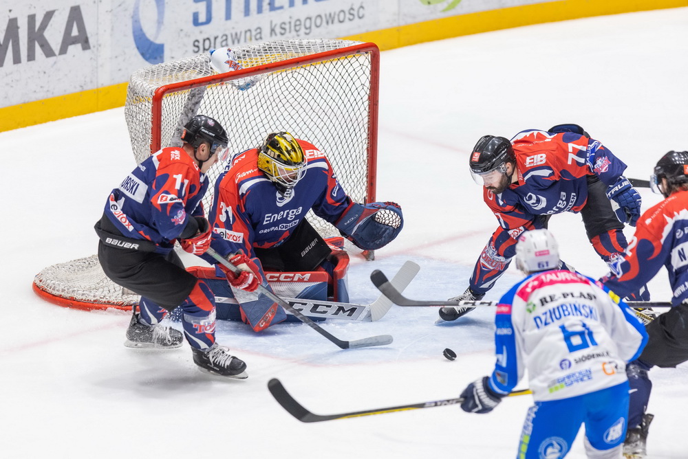 Na lodowisku w Oświęcimiu w 30. minucie gospodarze też prowadzili z KH Energa Toruń tylko 1:0, ale po drugiej tercji było już 3:0. Mecz zakończył się wynikiem 5:0. Bramkarz Kevin Lindskoug zachował czyste konto.