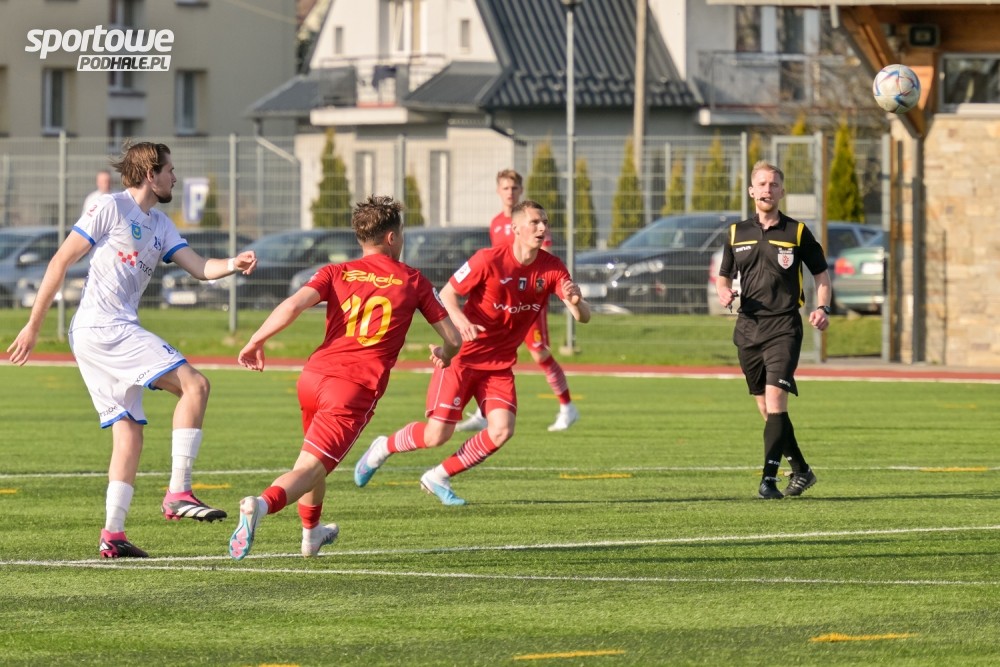 Przepraszam, a jeśli jednak się sądzi. Tak na dobrą sprawę podopieczni Szymona Szydełko dobrze zagrali tylko kilkanaście minut. Wydatnie w tym pomógł im rywal, a głownie Ochał, który przy pierwszym golu faulował w polu karnym Karmańskiego, a zaraz po przerwie próbował zagrywać do bramkarza, ale sprytniejszy okazał się Antkowiak. Te gole ustawiły mecz, po nich Sokół już się nie podniósł. Więcej, tak był zaskoczony przebiegiem tych kilku minut, że dał sobie wbić kolejne dwa gole. Niestety pierwsza połowa w wykonaniu nowotarżan była słaba. Nie wypracowali sobie żadnej sytuacji golowej. Wszystkie dośrodkowania w pole karne były niecelne, często piłka w polu nie znajdowała adresata. Po zdobyciu czwartego gola ich gra wróciła do tego co prezentowali w pierwszych 45 minutach. Oddali inicjatywę rywalowi, który po zmianie czterech piłkarzy (zaraz po stracie czwartej bramki) próbował ratować twarz. Trener Podhala też poczynił zmiany i dał szansę debiutu dwóm młodym piłkarzom, synom sponsora i prezesa. Miejmy nadzieję, że ta wygrana obudzi górali i kolejne mecze będą lepsze w ich wykonaniu, a przede wszystkim zwycięskie, by piąć się w tabeli, a tym samym uciec od strefy zagrażającej spadek.