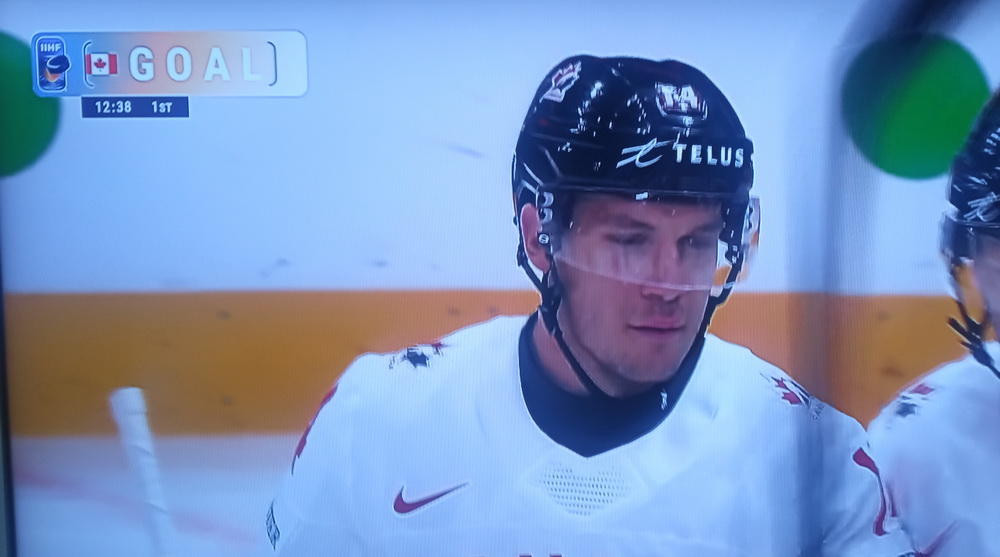 Początkowe 20 minut należało do Kanady, która była bardzo aktywna w ataku, ale Słoweńcy trzymali się dzięki ratunkom czeskiego bramkarza Lukasa Horaka, który bardzo dobrze radzi sobie w bramce. Gol padł w ósmej minucie meczu, kiedy Bo Horvat wykorzystał grę w przewadze i otworzył wynik.