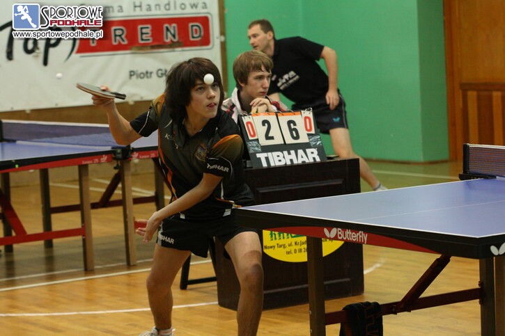Na drugim stole z obu stron zagrały „młode wilczki”. Jarosławskie już sporo potrafią, ale na nowotarskie to było za mało. Gospodarze pokazali, że to oni będą rozdawać karty. Jakub Czyszczoń szybciutko się rozprawił z Pawłem Oziebło, podobnie Tomasz Klocek nie dał najmniejszych szans Hubertowi Żołyniakowi. Tomka dopingowała sympatia i w drugim secie, gdy rywal prowadził, przeżywała spore emocje. Zrobiło się jej gorąco i musiała ściągnąć kurtkę. Tomek pod bacznym okiem przeciągnął partię na swoją korzyść, a w trzeciej postawił kropkę nad „i”.