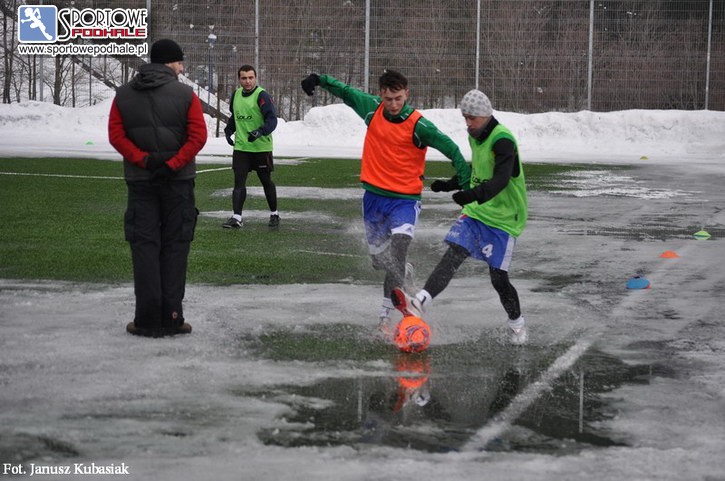 Mecz lepiej rozpoczęli piłkarze z Nowego Targu. Kilka ich groźnych uderzeń lodowało nad poprzeczka, obok słupków albo w rękach Potaczka. Wierchy też miały swoje sytuacje. W 14 minucie strzał Celińskiego obronił bramkarz Podhala. Kilka minut później próbował Książek, ale do sukcesu było daleko. Za to zawodnicy z Nowego Targu atakowali i stwarzali coraz to groźniejsze sytuacje i w końcu jedną z nich wykorzystali. W 41 minucie pomocnik Podhala dośrodkował piłkę, która minęła Majerskiego i zaskoczyła Nawarę. Z prezentu skorzystał napastnik Podhala i nie dał szans Potaczkowi. Pod koniec pierwszej połowy drużyna Wierchów miała jeszcze kilka świetnych okazji na strzelenie bramki, ale nie wykorzystała ich.