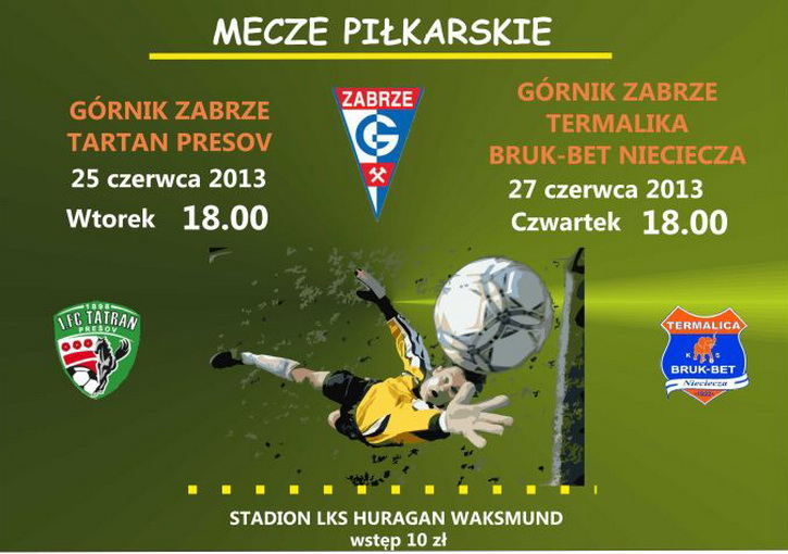 Serdecznie zapraszamy wraz z klubem LKS Huragan Waksmund na sparingi Górnika Zabrze, które odbędą się na boisku piłkarskim w Waksmundzie.