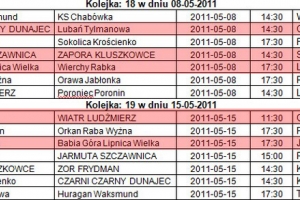 AKTUALIZACJA ZDJĘĆ: 19. kolejka spotkań była niekompletna. Spotkanie w Lipnicy Wielkiej zostało przełożone. Piłkarze grali w trudnych warunkach, na grząskich i śliskich murawach. Nieraz piłka płatała im psikusa, zatrzymując się w błocie lub w kałuży wody. Jak na panujące warunki należy odnotować niezłą skuteczność – 21 bramek.