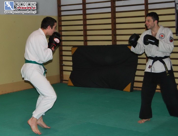 Na sali gimnastycznej w nowotarskiej hali lodowej odbył się egzamin jiu jitsu modern combat uczniów I i II klasy prywatnego liceum ogólnokształcącego dla młodzieży im. prof. Jana Venuleta, klas mundurowych o profilu wojskowo/pożarniczym i policyjnym.