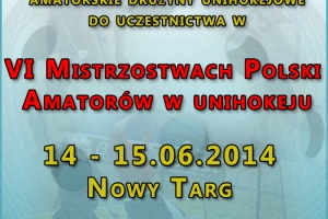 Zaprasza wszystkie drużyn unihokejowe do udziału w VI Mistrzostwach Polski Amatorów w unihokeju, który rozgrywany będzie na Sali gimnastycznej Hali Gorce w dniach 14-15 czerwca 2014.