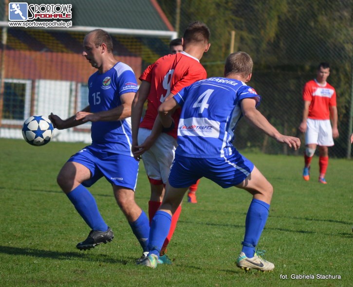 AKTUALIZACJA (zdjęcia): W podhalańskiej klasie B gr. II rozegrano mecz na szczycie pomiędzy liderem Przełęczą a wiceliderem Spiszem. Przełęcz po ośmiu zwycięstwach doznała porażki na boisku w Krempachach, ale utrzymała jednopunktową przewagę nad Krempachami. W grupie I również sensacja niepokonana dotąd Orawa straciła pierwsze punkty!