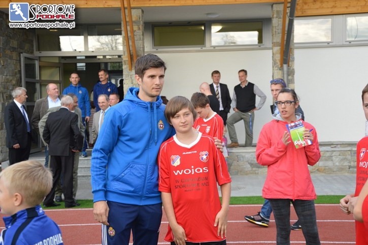 Otwarcie zrewitalizowanego stadionu, wyposażonego w sztuczną murawę było okazją do zaproszenia tuzów ekstraligowego grania zawodników Wisły Kraków, a także do obejrzenia szybko pnących się w górę, na obecnym etapie czwartoligowców, zawodników NKP „Podhale” Nowy Targ.