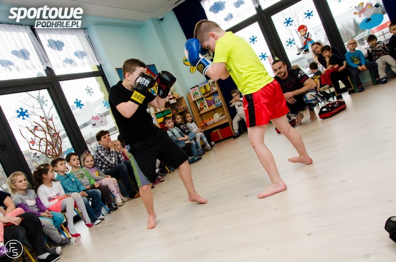 Nowotarski Klub Sportów Walki odwiedził przedszkole „Wesoły Korowód”. Zawodnicy zaprezentowali techniki walk. Dzieciaki i opiekunowie podjęli rzuconą przez Wojciecha Hołego i spółkę rękawice i spróbowali swoich sił.