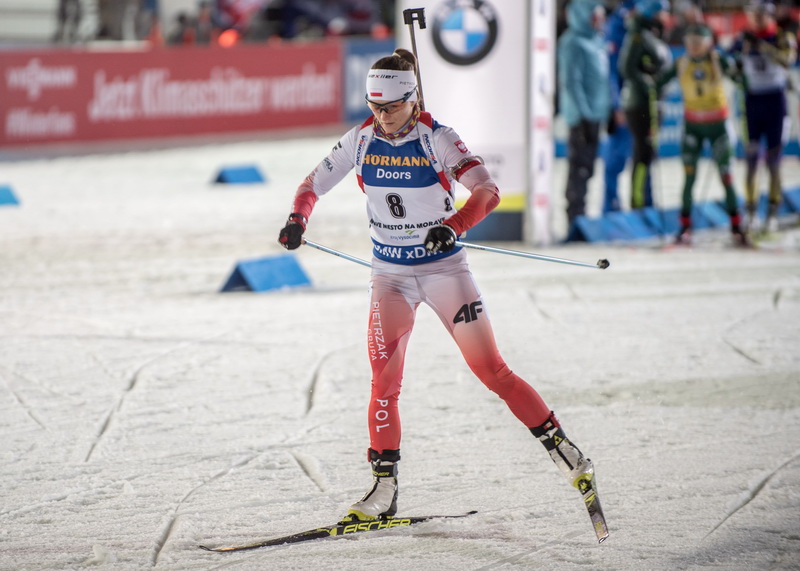 W biathlonowym biegu ze startu wspólnego w Novym Meście wystartowały dwie reprezentantki Polski. Monika Hojnisz z czterema karnymi rundami finiszowała na dwunastym miejscu, Kinga Zbylut po trzech pudłach zajęła dziewiętnasta pozycję.