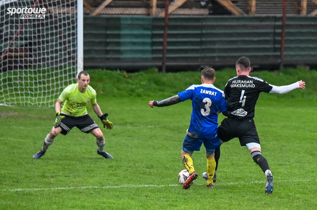 Mimo trudnych warunków pogodowych, na boisku w Poroninie odbył się zaległy mecz pomiędzy Zawratem, a Huraganem.