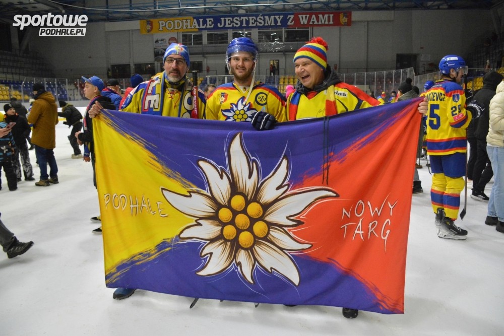 Fiesta kibiców z zawodnikami PZU Podhale po wygranym meczu z Tychami