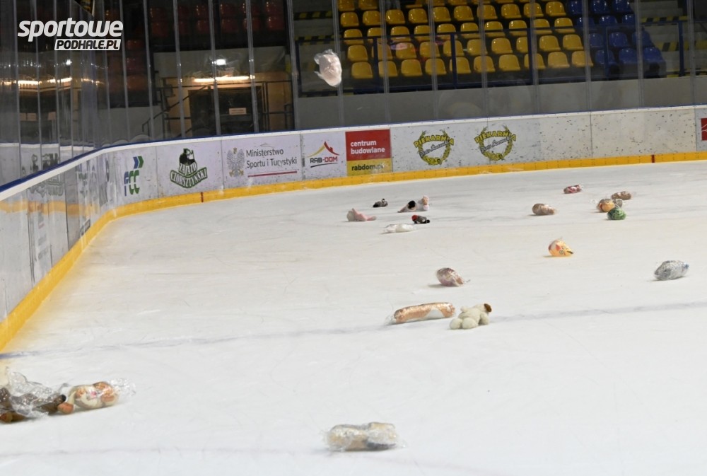 Akcja Teddy Bear Toss na meczu Podhale - Zagłębie Sosnowiec