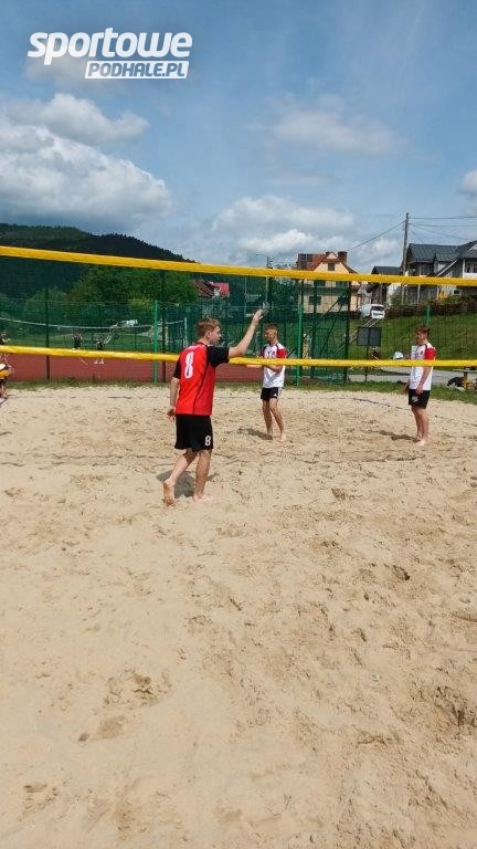 Na boisku do piłki siatkowej w Krościenku nad Dunajcem odbyły się Igrzyst=ka Młodzieży Szkolnej Ośrodka Pieniny w siatkówce plażowej chłopców, organizowane przez Powiatowe Centrum Kultury.