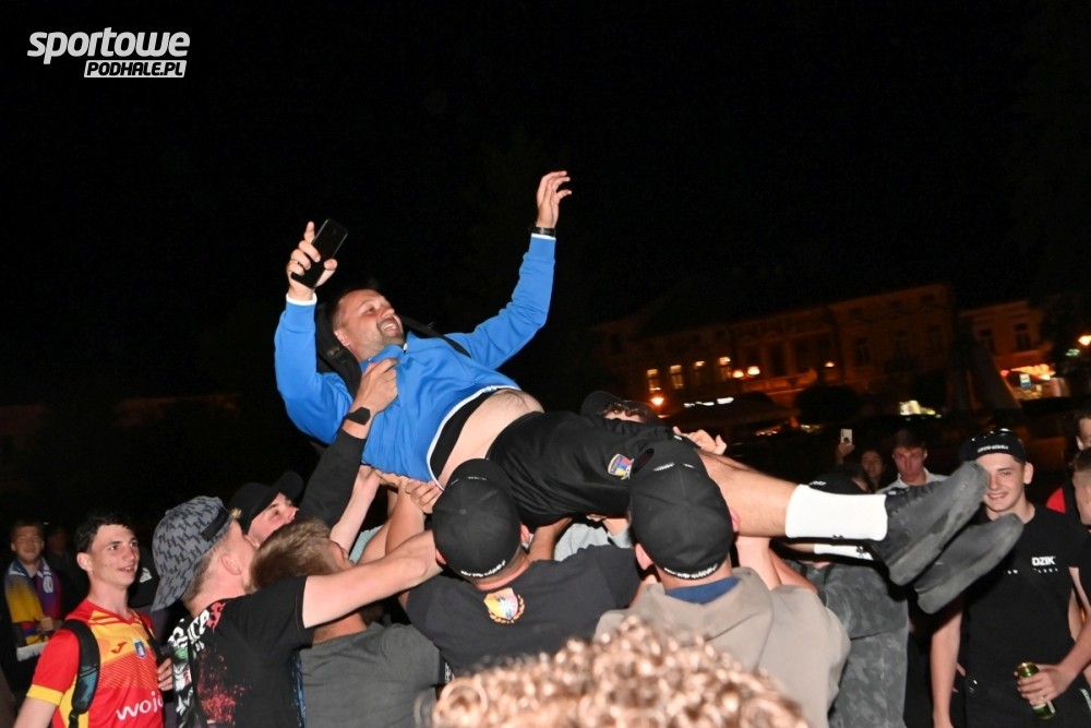 Nocna feta na Rynku po awansie piłkarzy NKP Podhale Nowy Targ do II ligi