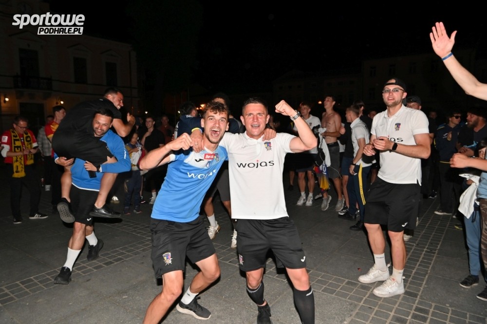 Nocna feta na Rynku po awansie piłkarzy NKP Podhale Nowy Targ do II ligi