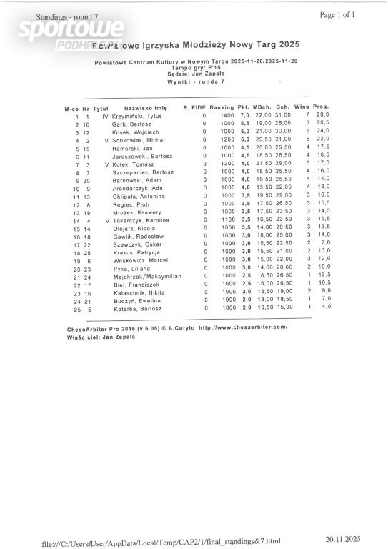 Ponownie w siedzibie Powiatowego Centrum Kultury w Nowym Targu odbyły się zmagania szachistów i szachistek z powiatu nowotarskiego. Tym razem 25 uczestników w kategorii wiekowej 7-8 klasa rywalizowało o prymat w powiecie i awans do zawodów wojewódzkich.