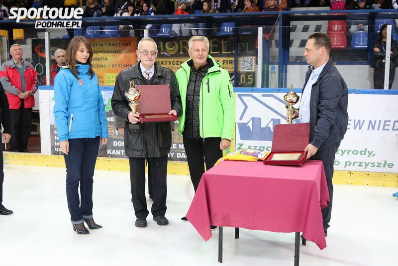 Przed spotkaniem pożegnano zasłużonych sędziów – Mariana Rajskiego i Ludwika Rokickiego. Podziękowania złożył Jacek Chadziński, wiceprezes PZHL oraz Agata Michalska, prezes TatrySki Podhale.