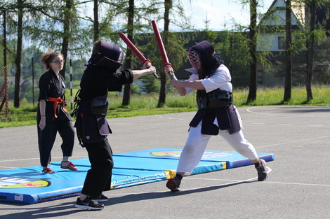 Nasi goście przybyli by zaprezentować elementy wschodnich sztuk i sportów walki m. in. jiu jitsu i kendo. Uczniowie mieli okazję podziwiać sprzęt i stroje treningowe kendo, zapoznać się z zasadami przeprowadzania pojedynków a także obserwować pokazowe walki. Nie byli jednak biernymi uczestnikami tego pokazu. Sensei Aleksander Kozieł przeprowadził trening, który pozwolił uczniom nabyć nowe, ciekawe umiejętności i poszerzyć wiedzę o sportach walki. W imieniu swoim i społeczności szkolnej składam serdeczne podziękowania SKKF "AKYAMA" za przybycie i przeprowadzenie fantastycznych zajęć i pokazów.