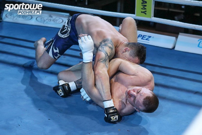 Walki MMA rozpoczęły się od mocnego uderzenia. Maciej Miskowiec (Jarosz Fight Club Rabka) już w pierwszej rundzie pokonał Adriana Rusina (Gracie Barra Rzeszów) w wadze -95 kg. Maciek rozpoczął ostro, ale kopnięcie na głowę mu nie wyszło. Rywal złapał za nogę i doszło do spięcia w parterze. Szybko wrócili do stójki, ale kolejna akcja górala sprawiła, że przeciwnik znalazł się na macie. Maciej szybko wskoczył na niego i obkładał go pięściami. Było kilka „młotków”, które skruszyły rywala. Za chwilę walka dobiegła końca.
