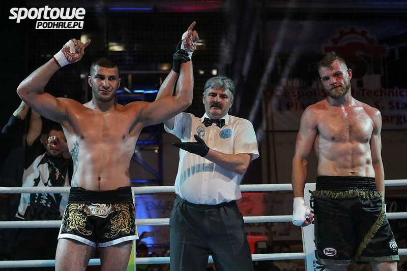 W nich zobaczyliśmy mistrzów pięści i kopnięć z Nowotarskiego Klubu Sportów Walki Hoły Team. Nim jednak wyszli do ringu zawodowcy odbywały się walki w ramach czempionatu kraju w low kicku. O medale walczyli nie tylko seniorzy i seniorki, ale także juniorzy. Ci pierwsi zakończyli swoje walki. W niedzielne późne popołudnie skrzyżowali rękawice seniorzy. W walce o złoto NKSW miał dwóch przedstawicieli, Konrada Hołego w wadzie -75 kg i Bartka Domalika w wadze -81 kg. Przeciwnikiem pierwszego był Michał Burden z Chełma. Różnie układały się losy tego pojedynku. Góral miał świetny początek, atakował górne i dolne partie przeciwnika. Od połowy drugiej rundy inicjatywę zaczął przejmować jego przeciwnik i nawet finisz w końcówce walki nie wystarczył, by zdobyć pas mistrza kraju. Wicemistrzostwo to spory sukces Konrada.