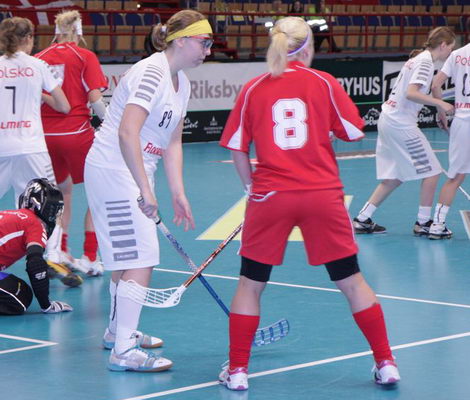 Polki źle rozpoczęły pojedynek. Stawka meczu paraliżowała ich ruchy, toteż szybko straciły dwa gole. Biało – czerwone obudziły się dopiero w połowie meczu. Sygnał do zmiany scenariusza dała Kolasińska, która w 31 minucie zdobyła kontaktowego gola. Nerwy opuściły nasze reprezentantki i z ogromną siłą napierały na duńską bramkę. Na wyrównanie czekaliśmy do 45 minuty. Samson pokonała bramkarkę gości. Radość z remisu trwała zaledwie 37 sekund. Moment rozluźnienia natychmiast wykorzystały przeciwniczki. 16 sekund później nowotarżanka Sarna Pohrebny doprowadza do wyrównania i od tego momentu na parkiecie dzielą i rządzą nasze reprezentantki. Atak za atakiem sunie na duńską bramkę. Bramkarka zwija się jak w ukropie, ale nie potrafi zatrzymać strzałów Plechan i Kolasińskiej. Polska wygrywa! Szał radości zapanował w polskiej ekipie.