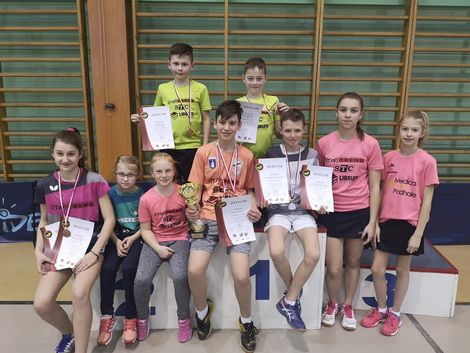 W tym dorobku były dwa krążki z najszlachetniejszego kruszcu oraz srebrny i trzy brązowe. Medale złote zawisły na szyi drużyny kadetek w składzie: Anna Cyrwus, Kamila Małysiak, Karolina Ścieszka. Na najwyższym stopniu podium stanął również Wiktor Klag, po rywalizacji w grze podwójnej młodzików. Wiktor wywalczył również medal srebrny w grze pojedynczej młodzików. Brązowe krążki zdobyli: drużyna kadetów (Maciej Kowalkowski, Bartłomiej Mrugała, Kacper Kwiatkowski), Natasza Korczak w grze podwójnej młodziczek, Michał Kowalczyk, Piotr Gniadek oraz Jan Mrugała w grze podwójnej młodzików.