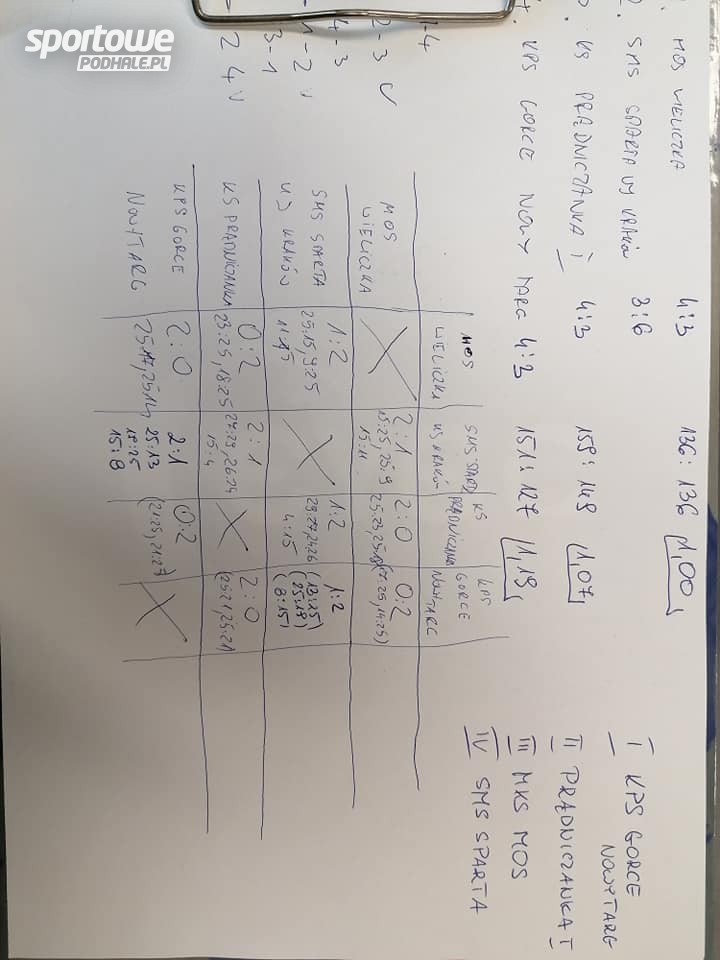 - Turniej był bardzo wyrównany i zacięty – twierdzi trener Karol Majewski. - Zwycięstwo przyszło dość niespodziewanie. Świadczy o tym fakt, iż trzeba było policzyć stosunek małych punktów zdobytych i straconych w całym turnieju. Ilość zwycięstw i ratio setów było identyczne dla trzech zespołów (jak na zdjęciu z wynikami).
