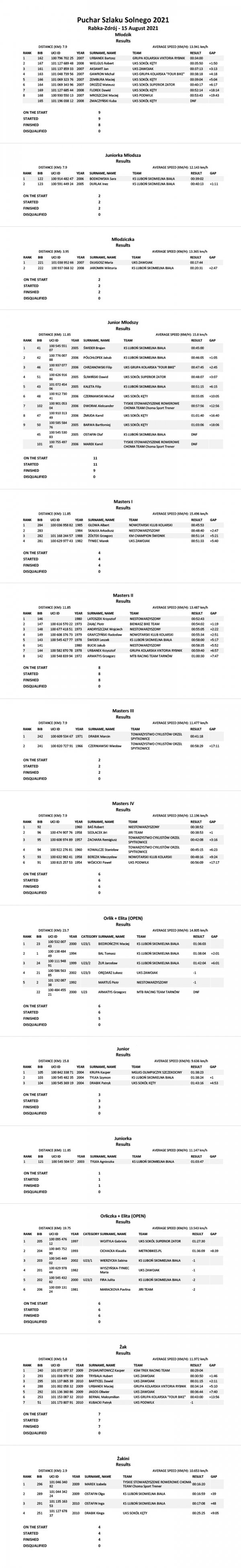Zawody w Rabce były trzecimi jakie w tym roku odbyły się w ramach Pucharu Szlaku Solnego. Cykl rozpoczął się 27 czerwca wyścigiem o puchar Burmistrza Tuchowa, następnie końcem lipca kolarze rywalizowali w Orawce o Puchar Wójta Gminy Jabłonka, a na zakończenie wakacji, 29 sierpnia czekają nas ostatnie zawody tegorocznej serii - o Puchar Gminy Spytkowice