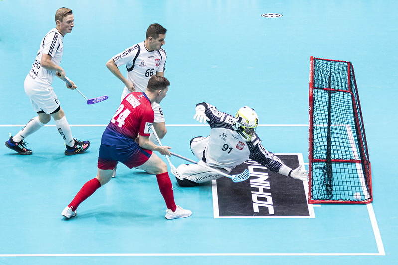Polacy nastawili się na grę z kontry. Przy grze w ataku trudno było rozmontować defensywę przeciwnika. Trzeba było próbować strzałów z dystansu, do tego zaskakujących. Tak uczynił w 26 minucie Michał Sieńko, który z zawijasa trafił pod poprzeczkę. Norwegowie atakowali, ale ostatni ich zawodnik popełnił błąd. Piłeczkę przechwycił Malajka i rozegrał ją z Gawrońskim. Dwójkowa kontra przyniosła prowadzenie. Gawroński odegrał na pełnym biegu do Malajki, a ten sfinalizował kontratak. Kolejne minuty to spory napór Norwegów. Bogdański zwijał się jak w ukropie ratując zespół od utraty gola. Raz w sukurs przyszła mu poprzeczka. Polacy przy wyprowadzaniu ataku zbyt często niedokładnie zagrywali. Bogdański nie zatrzymał uderzenia z dystansu. Piłeczka po ziemi wpadła w przeciwległy róg bramki. W końcówce dochodziło do dantejskich scen pod polską bramką, ale i my mieliśmy okazję, by zakończyć odsłonę prowadzeniem. Malajka minął obrońcę, ale nie dał rady golkiperowi.