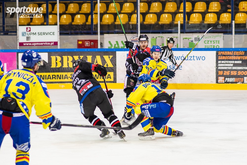 GKS Tychy w tym tygodniu przedłużył kontrakt z trenerem Andrijem Sidorenko na następne dwa lata. Rosjanin z białoruskim paszportem miał przede wszystkim poprawić grę defensywną tyszan, tymczasem gospodarze zaczęli mecz z JKH fatalnie szybko dając sobie strzelić dwa gole. Po 40 minutach obrońcy mistrzowskiego tytułu prowadzili 4:0 i tyszanie byli na łopatkach. Tak przynajmniej się wydawało. Ale kara Jelszańskiego (5 +20 min.) sprawiła, iż gospodarze szybko złapali kontakt i mecz nabrał rumieńców. Gospodarze dostali wiatr w żagle i raz za razem było gorąco pod bramką mistrzów kraju, którzy w dramatycznej końcówce dowieźli jednobramkowe zwycięstwo do końcowej syreny. Mecz w Tychach obfitowały w ostre starcia. Na lodzie bójki stoczyli najpierw Grigorij Żełdakow i Maciej Horzelski, a później Szymon Marzec i Paweł Jelszański. Cała czwórka została za to ukarana karami meczu i przedwcześnie musiała udać się do szatni.