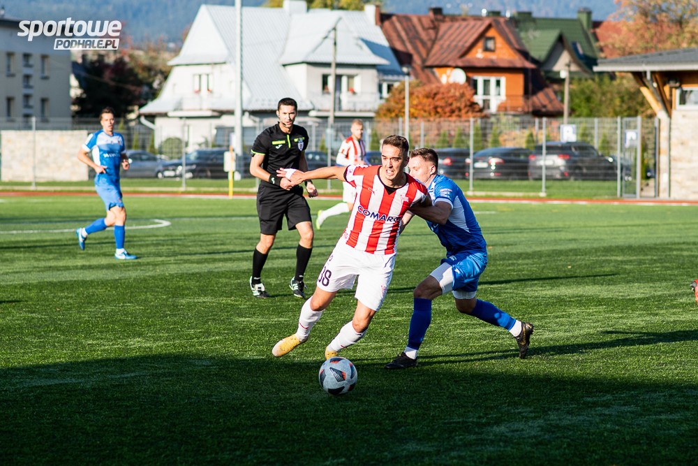 Podhale musiało cos zmienić w swojej grze, bo kolejne punkty im uciekały. Tymczasem, straciło kolejnego gola przy biernej postawie zarówno defensywy jak bramkarza. Tu już nie było miejsca i czasu na kalkulacje, trzeba było zaatakować. No i w 69 minucie, po uderzeniu Płatka z dystansu, złapali kontakt. Gol uskrzydlił Podhalan, którzy zaczęli sobie wypracowywać coraz lepsze sytuacje. Okazało się, że był łabędzi śpiew. Strata gola podrażniła krakowian, którzy odpowiedzieli kolejnymi trafieniami. Przy piątym pomogli im Broda, którego zagranie piętą do bramkarza wylądowało w siatce.
