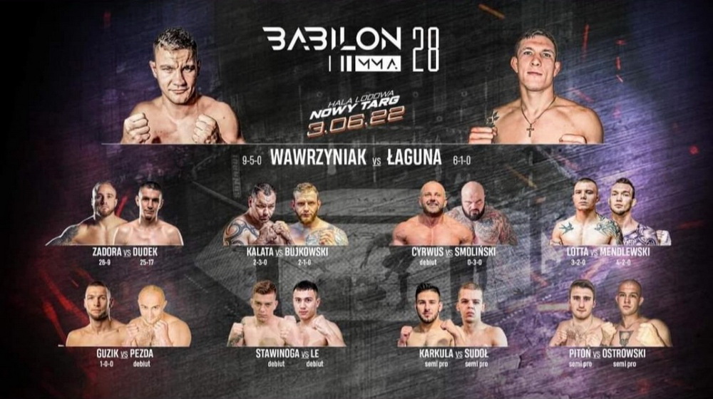 Walką wieczoru jest pojedynek o pas Babilon MMA w kat -84kg pomiędzy Łaguną a Wawrzyniakiem. Niesamowici wojownicy z Poznania, dadzą nam pokaz walki na najwyższym szczeblu sportowym.
