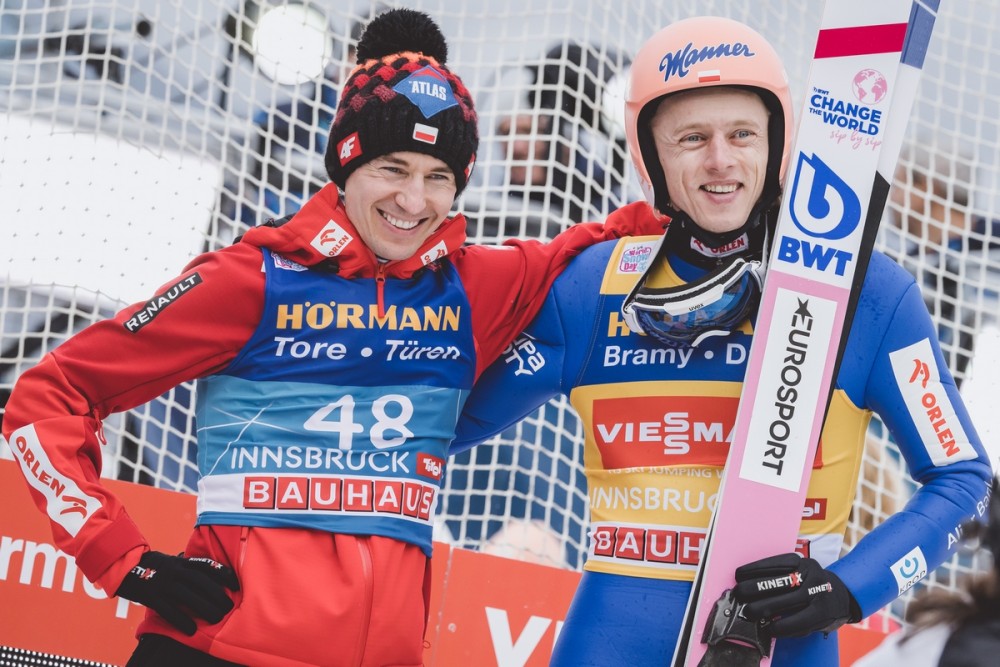 Ale najpierw swoje drugie próby wykonali Wąsek i Żyła. Dzień na Bergisel skończyli skokami na 111,5 i 119 metrów. Wąsek ukończył konkurs na 20 pozycji. Kiedy wydawało się, że temu drugiemu zakończyła się kapitalna seria miejsc w TOP10 zawodów PŚ, to rywale nieoczekiwanie zaczęli psuć skoki i Żyła sklasyfikowany został na dziesiątym miejscu. Niestety w tym gronie znalazł się też Stoch. 121 m w finale nie dało powrotu na podium po ponad roku oczekiwania. Zajął piąte miejsce, n ajlepsze miejsce w tym sezonie w PŚ.