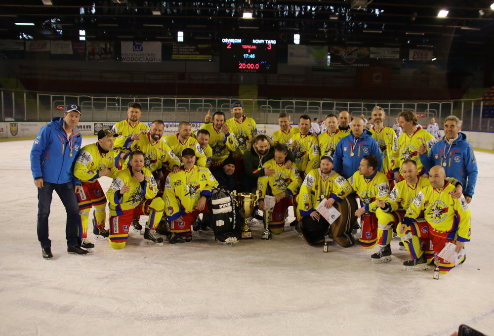 Ich rywalem w tegorocznym finale była Unia, w której wystąpili zawodnicy ograni w drugiej lidze. Ale to górale po pierwszej części meczu prowadzili 2:0 (grano dwie tercje). Świetnie zagrali taktycznie. Zdawali sobie sprawę, że w zespole oświęcimskim gra aż ośmiu zawodników poniżej 40 roku życia, w dodatku ogranych w drugiej lidze, więc zagrali defensywnie. Pierwszego gola zdobył Adam Zych z dobitki, on też został uznany najlepszym napastnikiem turnieju. Na 2:0 podwyższył Krzysztof Zapala, po kapitalnej akcji, Świetnie bronił Dariusz Gruszka (uznany najlepszym bramkarzem turnieju). Po przerwie nowotarżanie byli dość surowo oceniani przez prowadzących sędziów z Oświęcimia i Sosnowca. Co rusz odsyłali górali na ławkę kar. Co prawda w liczebnych przewagach unici gola nie zdobyli, ale powodowały utratę sił. Tym bardziej, iż kontuzji doznało dwóch graczy – Trzópek i Zapała. Oświęcimianie zdołali doprowadzić do wyrównania, ale w karnych lepsi okazali się nowotarżanie. Złotego gola, na wagę 13 tytułu mistrza Polski zdobył Michał Piotrowski.