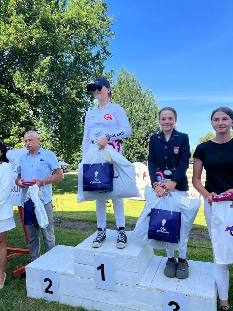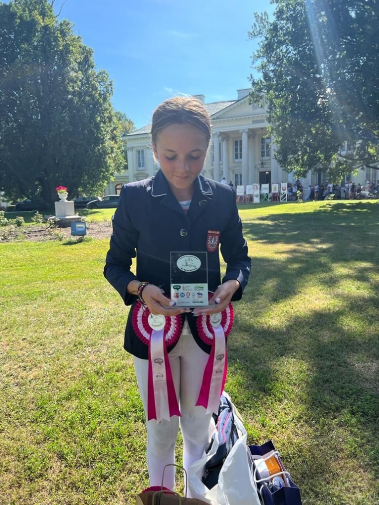 Para przepięknie przejechała czworobok, bezbłędnie kros i skoki tracąc niecały punkt do zwycięstwa. Madzię wyprzedził tylko zawodnik, który startował w najważniejszych konkursach WKKW z bardzo dużym doświadczeniem, a teraz startuje na równi z młodzikami. Jest to niestety mocno niesprawiedliwe w tego typu konkursach. Ale jeździectwo ma to do siebie, że w krajowych i międzynarodowych zawodach startują dzieci z seniorami, kobiety z mężczyznami ramię w ramię, stad tym bardziej jesteśmy dumni, że tak niewiele brakło 12 letniej Madzi do zwycięstwa.