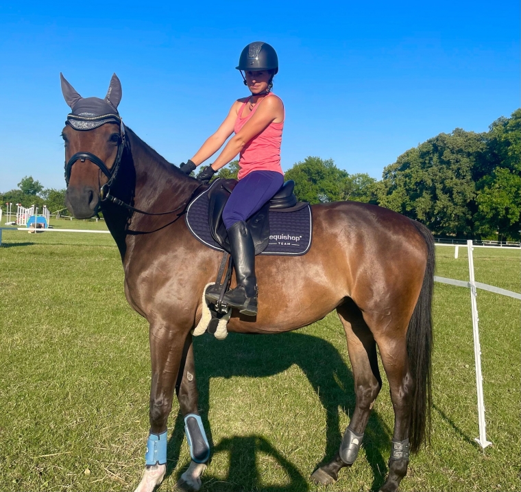 Madzi na swoim drugim koniu Dappled Grass po dobrym czworoboku - przytrafił się błąd na krosie, ale nadrobili czystym parkurem.