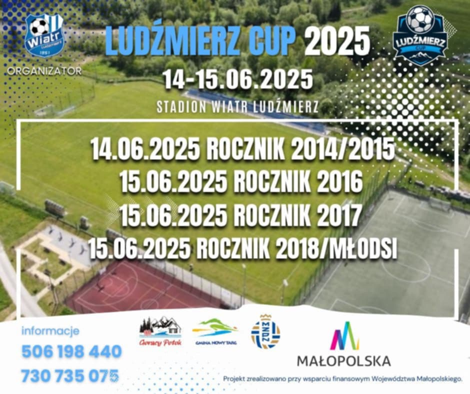 Już jutro na stadionie LKS Wiatr w Ludźmierzu startuje wyjątkowy turniej piłki nożnej dla dzieci Ludźmierz Cup, w którym udział weźmie około 500 młodych piłkarzy i piłkarek z różnych zakątków naszego regionu