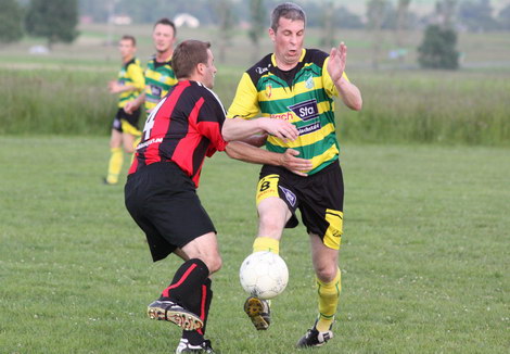 Początek spotkania nie zapowiadał emocji. Odnosiło się wrażenie, że piłkarze są na wakacjach. Długimi okresami nic nie działo się na boisku. Gospodarze prowadzili grę, ale dopiero w końcowych fragmentach pierwszej połowy wypracowali sobie strzeleckie pozycje. Niestety dla miejscowych Zygmuntowicz ( 26 min.) z bliska przestrzelił, niecelnie strzelali też A. Gogola (38 min.) i J. Milon ( 39 min.). Ten ostatni 3 minuty później ostemplował poprzeczkę. Goście pierwszy raz zjawili się w polu i karnym gospodarzy w 19 min. i...objęli prowadzenie. Po dalekim wyrzucie z autu P. Gogola krzyknął „moja”, a tymczasem piłka musnięta głową przez A. Zaryckiego przeskoczyła go i zatrzepotała w siatce.
