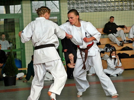 - Jestem bardzo zadowolona z występu Aśki – mówi jej trenerka, Ewa Pawlikowska. - W pierwszej walce pokonała zawodniczkę z Tarnowskich Gór wygrywając jednogłośnie decyzją sędziów. W następnej walce pokonała Ewelinę Mirosław ze Szczytna przez waazari. Walkę o finał przeszła walkowerem, ponieważ jej półfinałowa rywalka we wcześniejszej walce doznała kontuzji ręki. Nie była zdolna stanąć do walki. W finale Aśka spotkała się z Aleksandrą Zajkowską z Łomży. Moja zawodniczka kontrolowała walkę, stosowała skuteczne bloki, po których kontratakowała. Również widać było siłową przewagę Aśki. Niestety jej rywalka 30 sekund przed końcem walki zwiększyła częstotliwość uderzeń i kopnięć, co zadecydowało, iż dwóch sędziów bocznych wskazało zwycięstwo Zajkowskiej, a dwóch dało remis. Uważam, że walkę powinna rozstrzygnąć dogrywka, ale widocznie coś zabrakło Aśce i musi jeszcze popracować. Przed nami jeszcze kilka imprez, w tym mecz międzypaństwowy Polska-Litwa w Ełku, mistrzostwa Europy na Litwie (grudzień) i Puchar Polski w Zamościu (również w grudniu).
