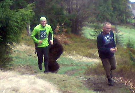 - Niedźwiedź brunatny, który przywędrował z Tatr przez Dzianisz i Waksmund w Gorce był trudny do schwytania – opowiada organizator biegu z ramienia Powiatowego Centrum Kultury, Adam Dudek. - Próbowało go wytropić aż 47 śmiałków. Niektórzy byli bliscy utraty życia. Jak choćby Jasiek Bylina. Na szczęście wszystko skończyło się szczęśliwie. Nikt nie ucierpiał. Brunatnego misia nie wystraszyły się kobiety, które również aktywnie włączyły się do tropienia potężnego zwierza. Wszyscy tropiciele otrzymali pamiątkowe dyplomy, a trzej najszybsi medale, które wręczał starosta Maciej Jachymiak, Lesław Mikołajski, Tadeusz Watycha i Bronisław Rejczak. Organizacją i sędziowaniem zawodów zajęli się ludzie gór: Jan Bylina, Wojciech Batkiewicz, Tadeusz Watycha, Marcin Kudasik i moja skromna osoba. Okazały puchar dostał się w ręce Jadwigi Frankiewicz, który przyjechała trapić niedźwiedzia za z Niemiec.