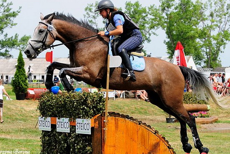Najtrudniejsza w WKKW jest próba terenowa. - Próba ujeżdżenia jest sprawdzianem posłuszeństwa, na czworoboku o wymiarach 20x60 m lub 20x40 m. Jeździec i koń mają do wykonania określoną liczbę ruchów w stępie, kłusie i galopie. Cross to dystans 3,5 km, z 20-25 przeszkodami o wysokości 100 – 120 cm., w skład, których wchodzą rozmaite kombinacje, duże zeskoki do wody, skoki nad nietypowymi czasem bardzo wąskimi przedmiotami lub wielkimi kłodami. W tej konkurencji nietrudno o wywrotkę, czy kontuzję konia bądź jeźdźca. Upadek nie ominął mnie w ubiegłym roku. Noga konia wpadła do dziury, przekoziołkowaliśmy, na szczęście tylko lekko się zadrapałam i potłukłam. Staram się jeździć bezpiecznie. Nie pnę się szybko w górę. Koń musi mieć czas, by się rozwinąć, a ja muszę „dojrzeć” do pewnych przeszkód.