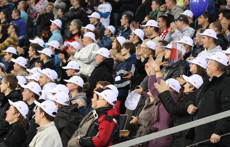 W charakterystycznych białych czapeczkach, ufundowanych przez firmę Błażusiaka, podziwiali fenomenalną jazdę krajana. Dotychczas mogli go oglądać tylko za pośrednictwem szklanego ekranu.