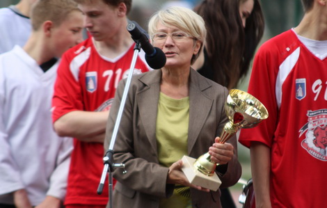 - Gościliśmy w swoich murach najlepszego motocyklistę świata Tadeusza Błażusiaka, ale nie na festynie. Spotkał się z młodzieżą, opowiadał o swojej przygodzie na motocyklu. Pokazał swojego stalowego rumaka, na którym zadziwia cały świata, na którym sięgał po mistrzostwo świata. Był oblężony przez łowców autografów, rozdawał plakaty. Trudno ściągać gwiazdy sportu, bo te zazwyczaj w mają zawody. Jest z nami dzisiaj Robert Szopiński olimpijczyk. Pracuje w naszej szkole, ale ci, którzy go nie znają moją okazję z nim porozmawiać, „złowić” autograf. Dzisiaj wcielił się w rolę arbitra.