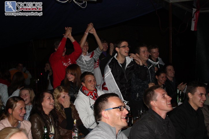 Szaliki, trąbki i „wuwuzele” – te klasyczne akcesoria przeważały u kibiców. Ani przez moment nie było cicho. Przez te chwilę można było się poczuć jak na stadionie. Gdy sędzia gwizdkiem dał znak do rozpoczęcia meczu, rozległy się barwa i okrzyki: „Dokopać im!”.
