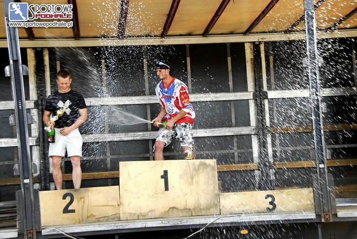 Start dla górala był wielką niewiadomą. Kontuzji nabawił się na własnym torze podczas treningów. - Na grząskim spadzie przeleciałem przez kierownicę i z całą siłą uderzyłem plecami o podłoże – wspomina. – Doznałem mocnych obrażeń kręgosłupa. Zerwałem przyczepy mięsni i rozciąłem skórę na plecach, która musiała zostać zszyta. Kontuzja mięsni była uciążliwa i wymagała długiej kuracji. Przez dwa miesiące nie mogłem usiąść na motocyklu. Sporo czasu spędzałem u lekarzy i w gabinetach rehabilitacyjnych. Moje przygotowanie do zawodów było więc zerowe. Przed pierwszym startem zaledwie dwie godziny spędziłem na motocyklu. W pierwszym starcie nie miałem czucia motocykla, ale kręgosłup nie bolał, więc postanowiłem wystartować. Początkowo traktowałem te zawody, jako zwykły trening. Wystartowałem w klasie Elite, czyli najmocniejszej. Jechałem ostrożnie, bo organizm nie był w pełni sił. Niemniej po kilku okrążeniach zapomniałem o ostrożności, adrenalina podskoczyła, wpadłem w wir startowy i nie mogłem odpuścić. Jechałem jakbym był w najwyższej formie fizycznej, szybko, agresywnie, z impetem pokonywałem wszystkie przeszkody. Z każdym okrążeniem czułem się zmęczony. Wcześniej jechałem treningi innych klas, bo czułem głód jazdy. Pierwszy wyścig uważam za dobry. Od startu prowadziłem i systematycznie z okrążenia na okrążenie zwiększałem prowadzenie. Nie ustrzegłem się błędów, spowodowanych brakiem objeżdżenia, ale mimo zmęczenia, głównie barków, minąłem pierwszy linię mety, ze sporą przewagą. Przed drugim startem miałem sporo czasu, zdążyłem więc zregenerować siły. Skorygowałem też błędy. Jechałem płynniej, prowadząc od startu do mety. Szybciej pokonałem trasę. Wyścig ukończyłem na pierwszej pozycji z dużą przewagą. Zawody udane, motocykl nie sprawiał żadnego kłopotu. Chciałbym podziękować osobom, które mnie wspierały, a także klubowi MTR Osielec i firmom KLEMMA, Termy Szaflary i Raf Racing.