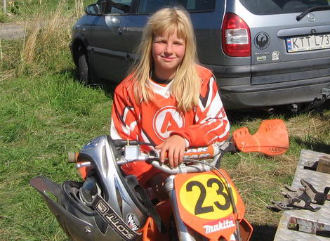 Blondyneczka z Nowego Targu w ostatnich dwóch sezonach była rewelacją na motocrossowych torach. Biła chłopaków na łeb i szyje. Ten sezon rozpoczęła bez jakichkolwiek przygotowań. Po prostu nie ma gdzie trenować. Tor na Równi Szaflarskiej w Nowym Targu przestał służyć motocyklistom. Taka jest jednak wola jego właściciela. Szkoda, bo jak się powiedziało „a”, to nie należało w połowie drogi postawić znak stopu. Mimo tych utrudnień, Karolina nadal „bije” chłopaków. W Rosówce, gdzie rozgrywana była jej klasa MX 65 zajęła szóste miejsce, w obu biegach. Z pierwszym wyścigu na pierwszym zakręcie była szósta i tak dojechała do mety. Najlepiej wystartował Szymon Staszkiewicz (niezrzeszony), ale na szóstym okrążeniu skutecznie zaatakował Kamil Osieleniec (Cross Lublin) i prowadzenia nie oddał już do mety. Na ósmej pozycji bieg ukończył Jędrzej Mikołajski, reprezentant AMK Gorce Nowy Targ.