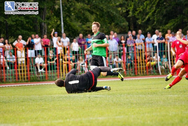 Debiutujący w III lidze Poroniec przegrał na swoim boisku (to swoistego rodzaju eufemizm, bo mecz był rozgrywany na trawiastym boisku zakopiańskiego COS-u) z Przebojem Wolbrom 3:5. Strata u siebie aż pięciu goli to zdarzenie wprost niewytłumaczalne. W pierwszym kwadransie piłkarze Porońca poruszali się po boisku jakby ktoś spętał im nogi i w tej sytuacji goście robili właściwie, co chcieli. Zdobyli trzy gole i tak naprawdę ustawili sobie mecz. Trudno za taką postawę rozgrzeszać poronińskich futbolistów, bo jak to się mówi „większość z nich z niejednego piłkarskiego pieca chleb jadła”. Owszem trener Rogala nie mógł skorzystać ze sporej grupy potencjalnych kandydatów do gry w wyjściowej jedenastce, ale to tylko jedna z przyczyn tak druzgocącej porażki. Przeciwko sobie Poroniec miał przecież młodą drużynę gdzie średnia wieku oscylowała w granicach 21 lat tymczasem średnia wieku drużyny Porońca to prawie 30 lat. Chyba to nie jest dobry kierunek w budowaniu drużyny. Nawet, jeżeli odejmie się od tego weterana Ryszarda Czerwca to doświadczenie boiskowe było po stronie zespołu z Poronina. Cóż, zatem się stało, że początek spotkania przebiegał tak jak przebiegał. Chyba jednak presja, bo oczekiwania właściciela klubu są zapewne wysokie.